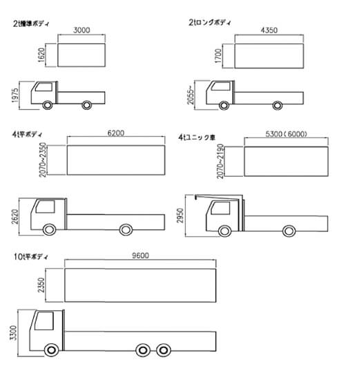 搬入車輌の大きさについては、下記の図をご参照ください。