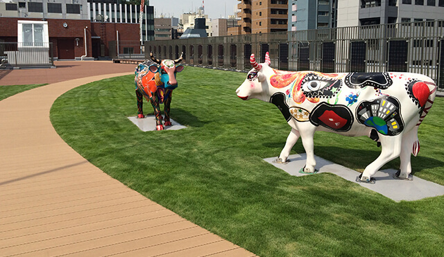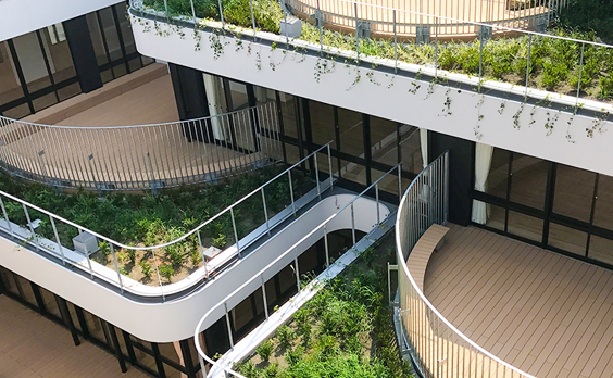 スクエアターフLightは、公共施設から高層ビルまで20万m2を超える屋上緑化に採用されております。安心安全の設計思想に基づくその信頼性は、48kg/m2(芝生、満水時)と軽量で、風速65mの風にも耐えうる耐負圧力を確保、また、雨水を有効利用できる底面貯水トレー方式を採用し「環境配慮型屋上緑化システム」として、採用率No.1の屋上緑化システムです(自社調べ)。