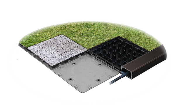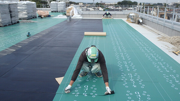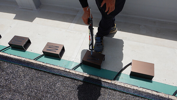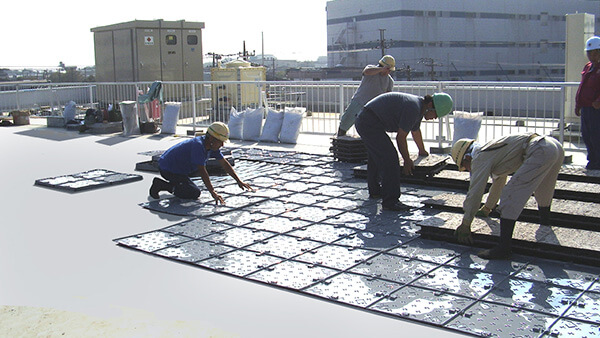 スクエアターフLightはユニット式のため、防水層更新の際にも簡単に取外し可能です。取り外したユニットは再利用できるため、環境に優しい商品です。