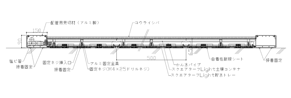 | 構成 | 植栽+土壌コンテナ+貯水トレー+かん水パイプ |